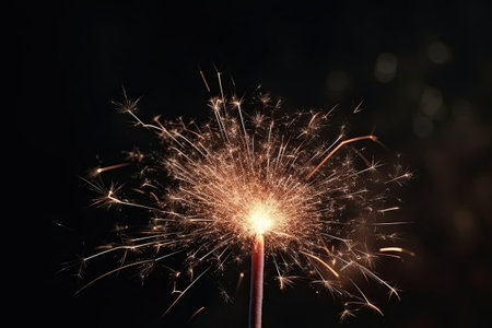 sparkler on black background, closeup photo with shallow depth of field