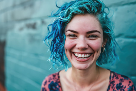 Vibrant Woman Employee: Marketing Manager With Blue Hair And A Beautiful Smile