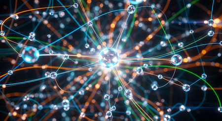 Network of colorful interconnected nodes visualizing global communication and data exchange