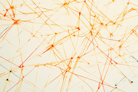 Colorful abstract network of threads and pins. That the image is generated using AI.