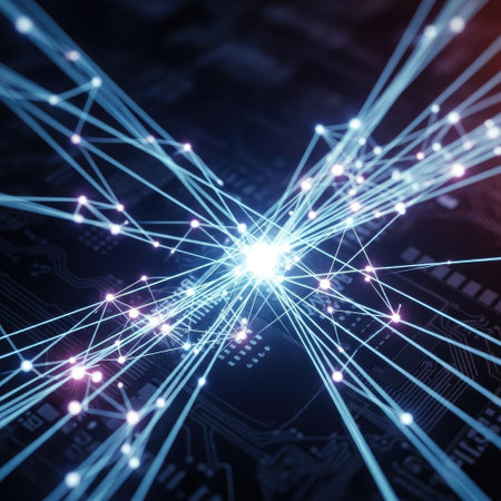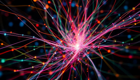 A visually striking abstract representation of neural pathways or a digital network with luminous nodes and lines, illustrating concepts of communication, science, and innovation.
