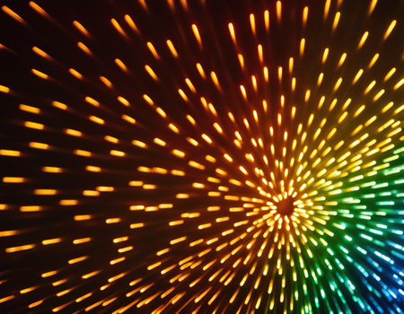 Central showing radial burst of colorful light streaks emanating from a dark central core. resolution