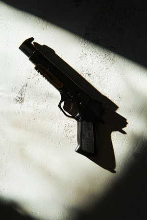 Automatic pistol handgun in artistic light effect moody atmospheric photo creative artistic closeup