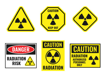 radiation danger sign set, radioactive hazard icons