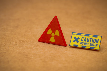 Radioactive ionizing radiation danger symbol with yellow and black stripes