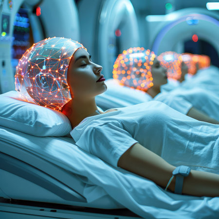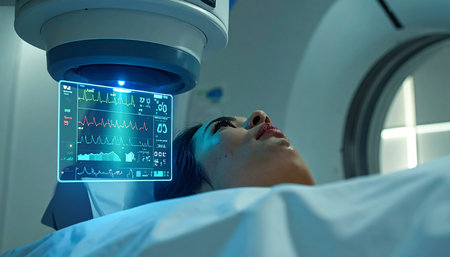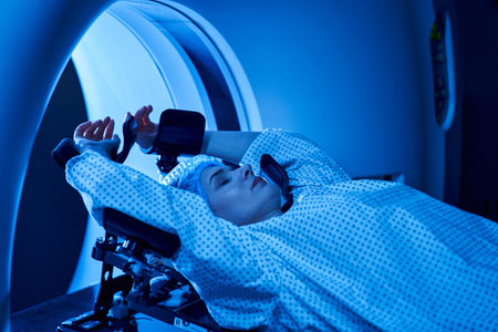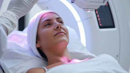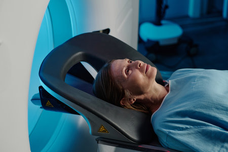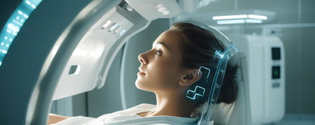 A woman lies in a cutting-edge MRI machine, preparing for a crucial health examination.