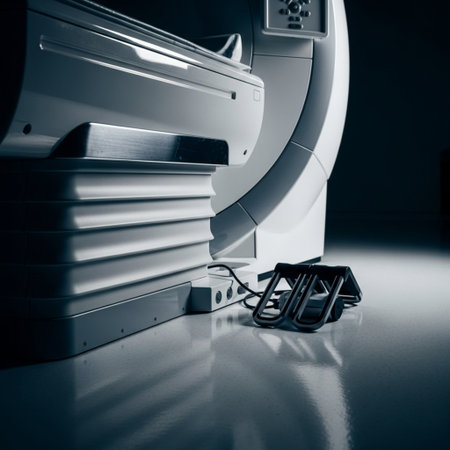 Medical equipment in modern hospital room. Magnetic resonance imaging (MRI) scanner. Generative AI