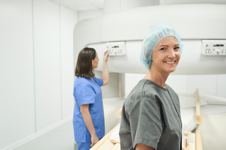 Doctor radiologist comforting a patient before the procedure of MRI or CT or PET Scan