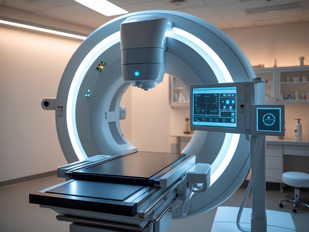 Modern linac machine delivering high energy radiation beams for precise cancer treatment, offering advanced radiotherapy technology