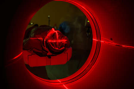 The patient undergoes MRI diagnostics. Diagnostic MRI machine close-up.