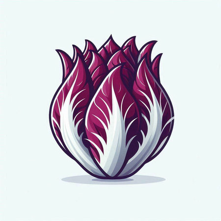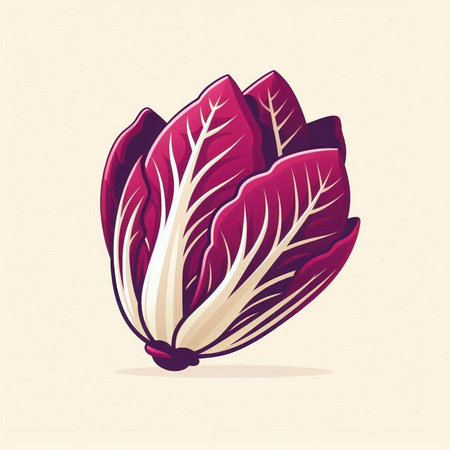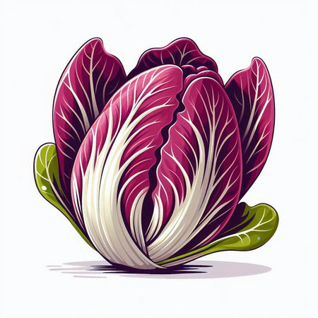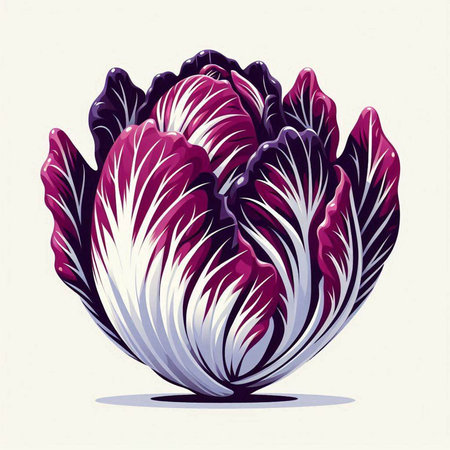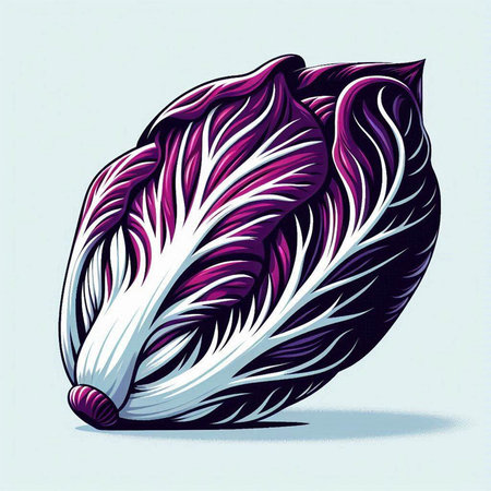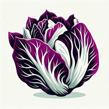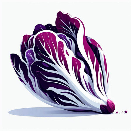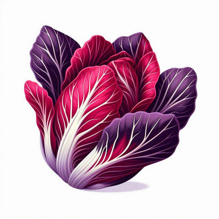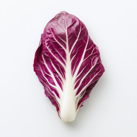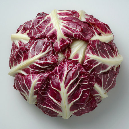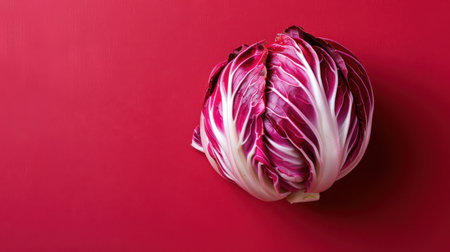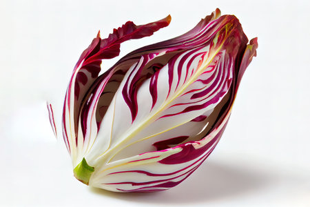 striking depiction radicchio displays its distinctive deep red purple leaves elegant white veins clean white background perfect adding touch minimalism any space.