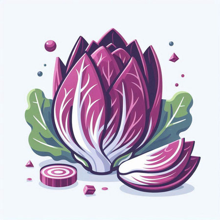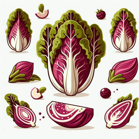 Chicory vector illustration. Lettuce, radicchio and onion
