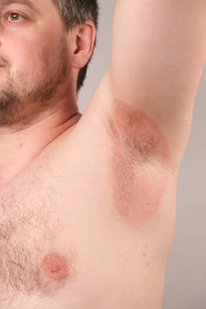 A man with a skin disease in the armpit area. Prickly heat.