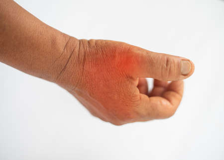 Close up Hand suffering from joint pain with gout.