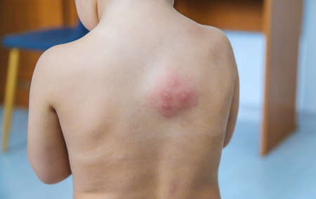 Mosquito bites on a child back. selective focus. kid.