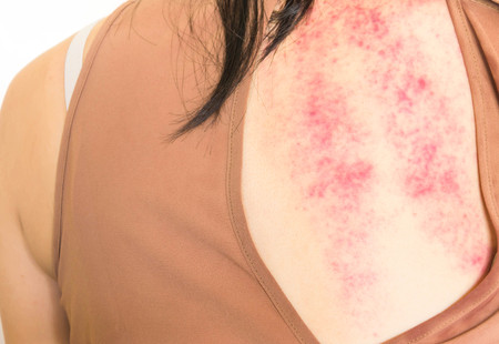 Close up Allergy rash, Around Back view of human with dermatitis problem of rash ,Allergy rash and Health problem.