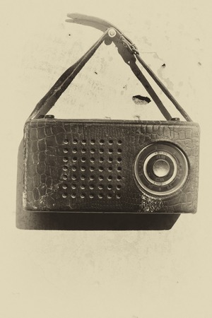 An old analog radio on a dark background. Space for text or design