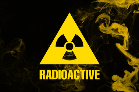 Radioactive sign and yellow toxic smoke against black background. Banner design
