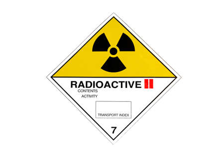 Radiation transport label Class 7 sticker affixed to the old sticker at the aluminum container of transport truck