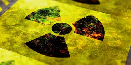 Old and worn radioactive symbol warning of danger