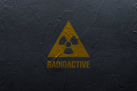 Radioactive sign on black textured wall. Hazard symbol