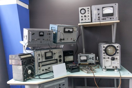 retro analog device for industry and scientific research and measurements, object closeup, concept of retro futurism electronics