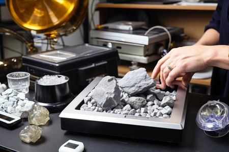 Scientist examines dark gray moon rocks