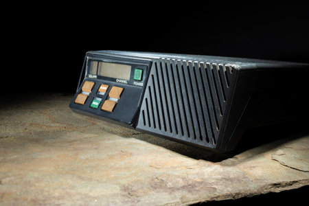 Close up of an old radio set, technology for communication via AM radio waves, the so-called walkie-talkie.
