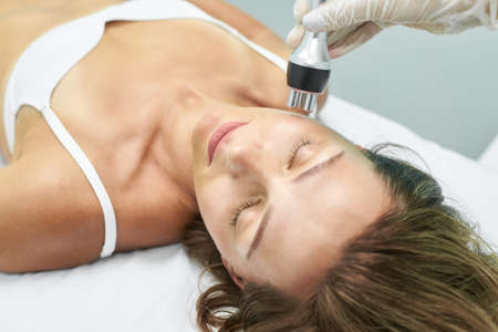 Dermatology skin care facial therapy. Medical spa anto wrinkles procedure. Woman face rejuvenation. Pretty girl. Rf cosmetician equipment.