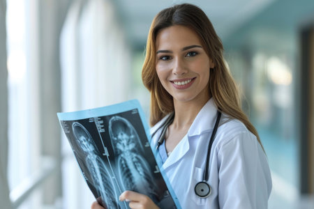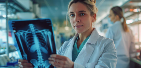 a nurse in a white coat looking at an x-ray Professional examination