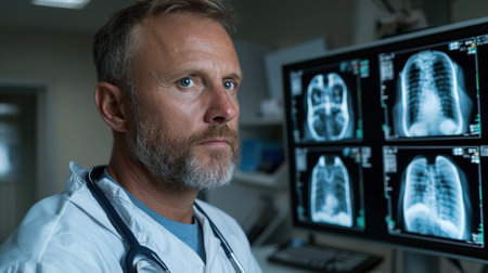 The doctor is standing next to the x-rays. Generative AI technology
