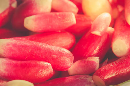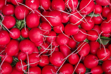 A pile of fresh raw red radish. Fresh radishes. A large bouquet of fresh beets and radish. radish in the basket. Close-up. Close-up of fresh red radish from the garden