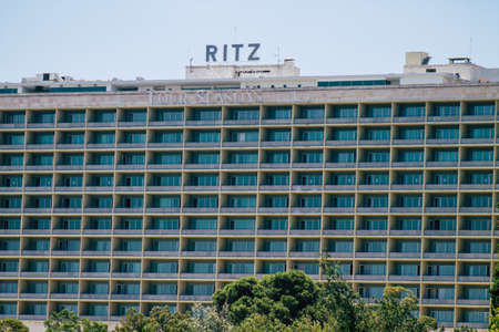 Lisbon Portugal july 27, 2020 View of the facade of modern buildings in the downtown area of Lisbon, the hilly coastal capital city of Portugal and one of the oldest cities in Europe