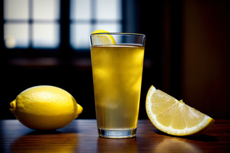 A Glass Of Lemonade Next To A Sliced Lemon. Generative AI