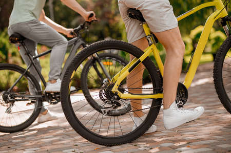 Legs cyclist on vacation after a long trip.