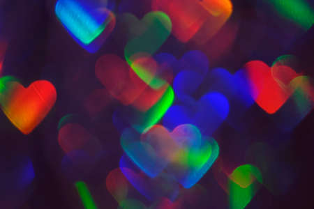 Valentine's day, blurred multicolored background colorful background with defocused lights. Multicolor blurred background. Blur, bokeh in the shape of hearts