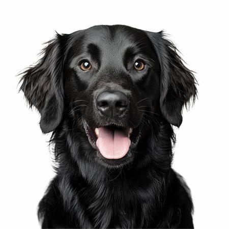 A pet, an animal. Brown labrador eyes in focus. The look of a black dog.