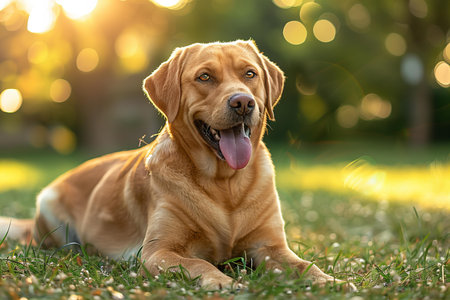 Labrador Retriever dog in the park at sunset, shallow depth of field