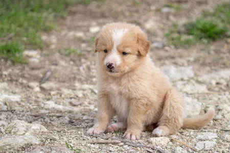 Portrait of a funny little puppy sit