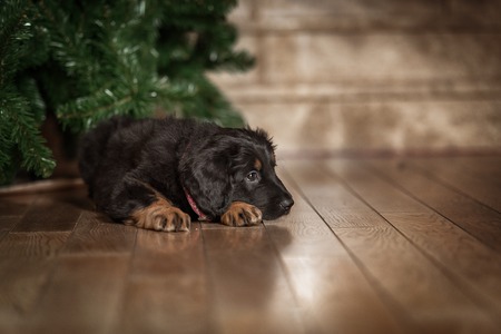 Louisiana Catahoula Leopard Dog puppy portrait on holiday background