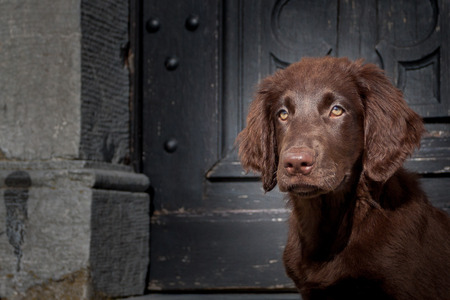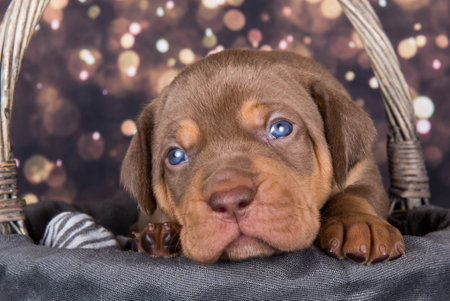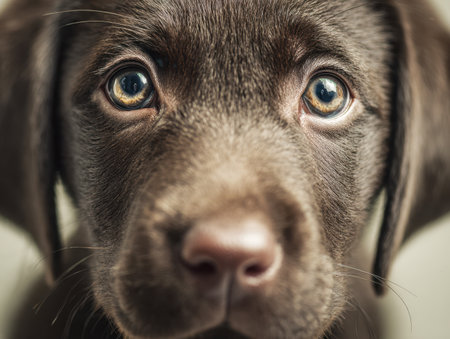 Close up of Labrador puppy, dark chocolate