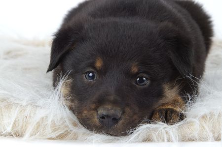 Lovely and sweet puppy resting with tender look and clear eyes