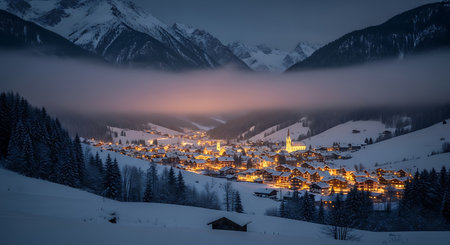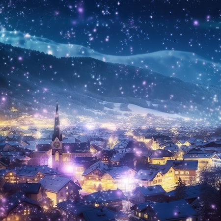 A Snowy Night in a Mountain Village,lights at night,christmas night in the city,city at night