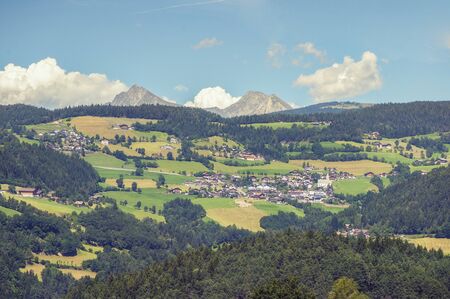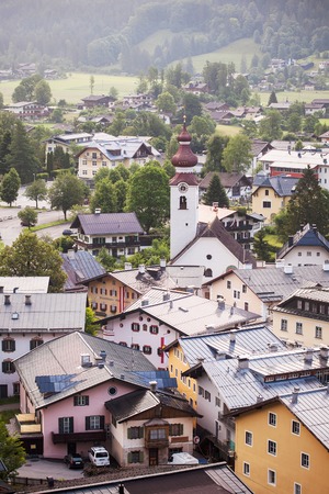 Aerial view of a village in the alpine mountains, Lofer, Austria.