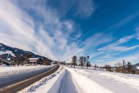 Mountains with snow in winter. Ski resort Brixen im Thalef, Tyrol, Austria