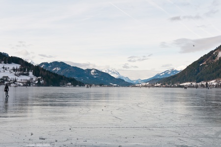 Landscape shot of the Alps between St. Johann and Sand in Taufers in Tirol, Italy in winter