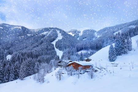 winter in Alps, Kaltenbach ski resort in Zillertal valley