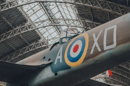 Brussels, Belgium - August 17, 2019: Close up of squadron code on Bristol 149 Bolingbroke IV-T aircraft in The Royal Museum of the Armed Forces and Military History, famous military museum in Brussels
