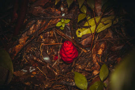 Beautiful red flower in the rainforest of Borneo.