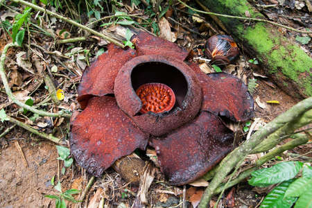 the world's largest flower rafflesia. rare beautiful red flower in the jungle